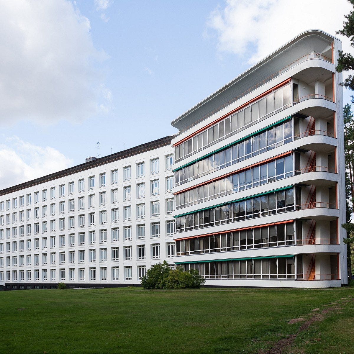 Paimio Sanatorium (Paimio, Finland) Designed by Alvar Aalto in 1933, this tuberculosis sanatorium epitomizes human-centered design. From the orientation of patient rooms to maximize sunlight to the custom-designed furniture, every detail was crafted to aid in patient recovery.